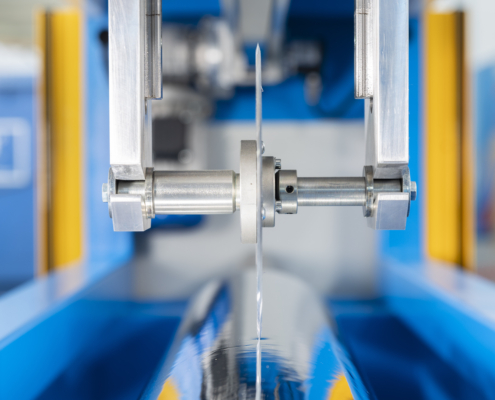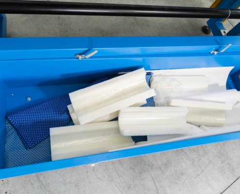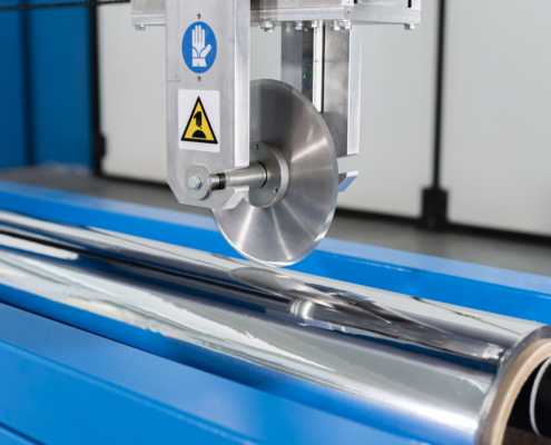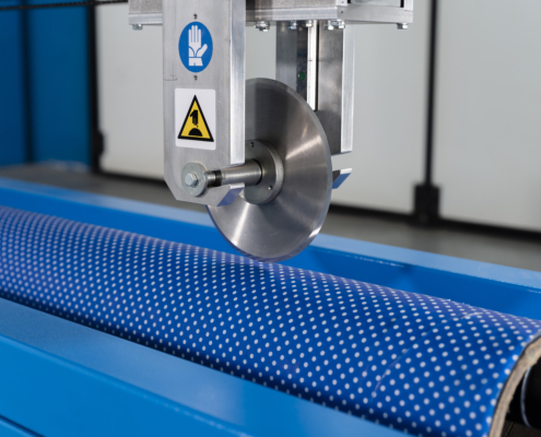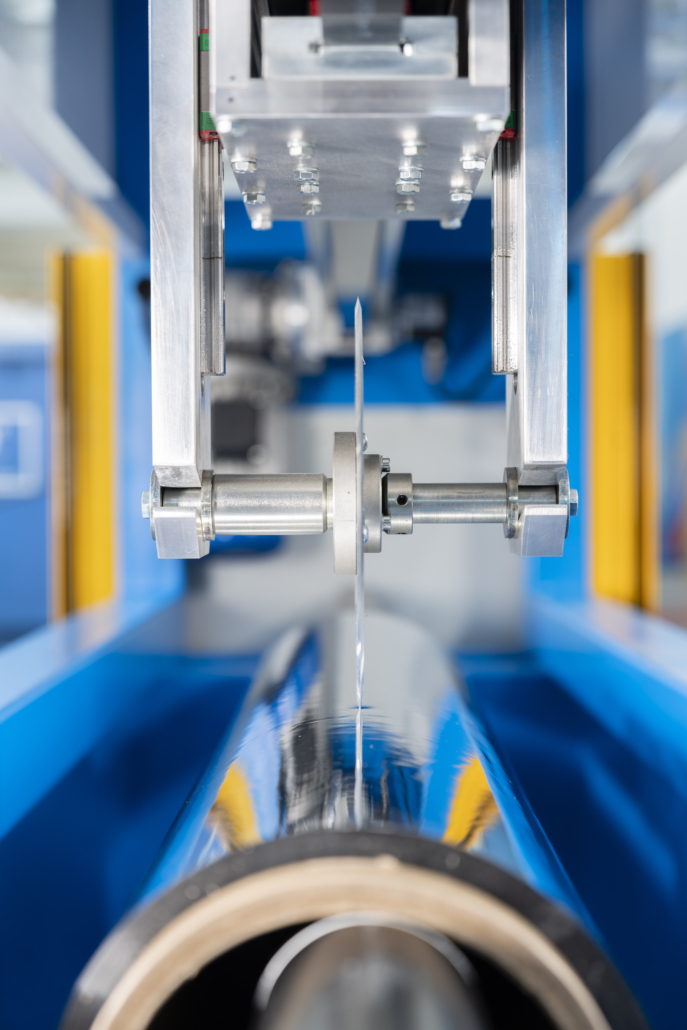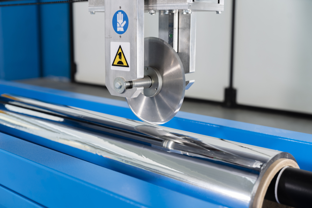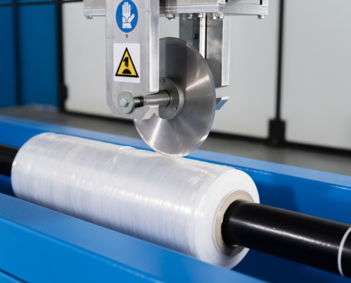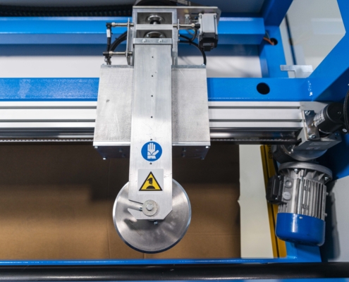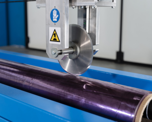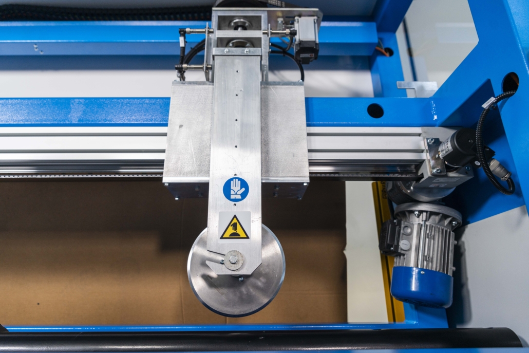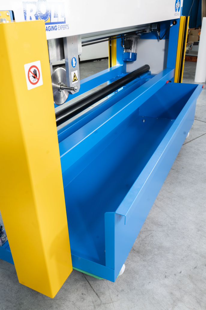 In collaboration with Roll-Packaging, we have developed a machine that effectively separates the core from the material in a straightforward manner. A circular blade, housed within the machine’s structure, ensures safe operation, and the cutting speed can be adjusted as needed.